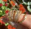 Because of the nature of the business, safety is one of her top concerns, and she’s had to invest in their space to protect staff, customers, and inventory in recent years. One expense that’s come down recently is lab-grown diamonds, sapphires, and emeralds. They’re a third of the price of natural stones and invite designers to take more risks. Ferguson brought some of these showstoppers, and this month, she’s putting on a Bridal Event featuring Todd Reed, Artemer, and Dana Bronfman, as well as lab-grown diamonds and eternity bands.