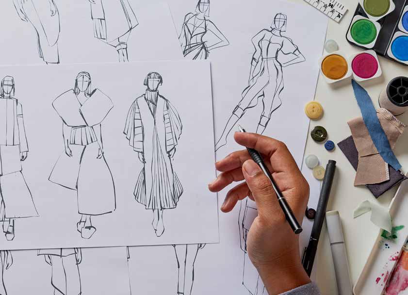 Every piece begins with an idea. Designers bring inspiration to life, sketching by hand or shaping it digitally. That vision moves to technical designers and pattern makers like Alison Hoenes, where creativity becomes structure and a precise blueprint takes form. Sample sewers bring garments to life, stitch by careful stitch, while fit models ensure each piece moves beautifully and fits as it should. Fashion at every stage is made with intention, patience and thoughtfulness.