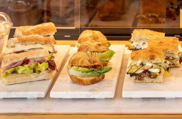 • Breakfast and Savory Offerings: Morning and daytime options include freshly baked croissants, muffins, yogurt parfaits, chia pudding and savory items such as Tuna Croissant Sandwiches, Smoked Chicken Wraps, Roast Beef Sandwiches and a Sorrento Veggie Sandwich with grilled vegetables, mozzarella and lemon aioli.