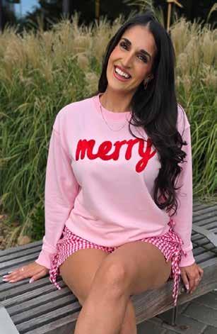 1. PINK MERRY SWEATER | “Pink/ Red 3D Merry Sweatshirt”: Celebrate the holiday season with this playful pink lightweight sweatshirt featuring a bright red 3D “Merry” design. Its cozy crew neck ensures comfort, while the cheerful colors add festive fun to any casual outfit. Perfect for spreading joy in style all season long!