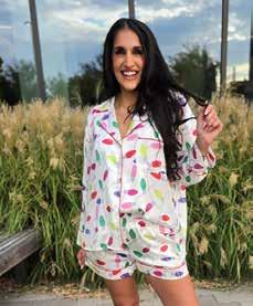3. CHRISTMAS LIGHT PJS | “Turn on the Christmas Lights Satin 2pc PJ set” : Light up your cozy nights with this playful 2-piece Christmas Lights PJ set. The off-white satin long-sleeve button-up top features a classic collar and festive multicolor lights design, adding holiday cheer to bedtime. Paired with loose-fit shorts that have an elastic waist and handy side pockets, this set offers comfort and convenience for lounging in style. Perfect for festive mornings or relaxed evenings, these pajamas bring joyful sparkle to your holiday routine.