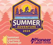 Summer Learning Challenge time continues through Aug. 15—keep the adventure going by logging those points for time spent learning, reading and attending library programs! All ages can earn prizes along the way and complete the challenge with 1,000 points. Upon meeting the community goal of 15 million points, the Pioneer Library System Foundation will donate books to children in WIC programs. Register at Pioneer.Beanstack.org