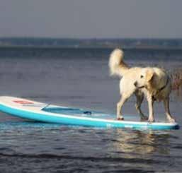 Fun on the lake! Waterdog! A paddle-boarding golden retriever enjoys the lake life.