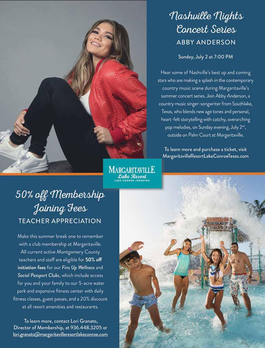In this issue, we will show you fun things to do with your family this summer by offering up some of the best adventures around. Did you know we have pirates on Lake Conroe? Well, we do. The motley crew adorning this issue's cover is ready to set sail and entertain young and old alike all summer. In fact, between 1097 Water Sports and the tall palms and vibrant pools at Margaritaville, you'll feel like you're vacationing in the Conroe-bbean!