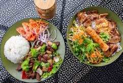 The restaurant’s vermicelli noodle bowl (rice noodles with fresh vegetables and grilled meat on top) is also wildly popular. For something that doesn’t require chopsticks or spoons, the bistro also boasts a selection of banh mi, the Vietnamese equivalent of a hero sandwich, laden with meats and condiments. The menu also features several gluten-free dishes.