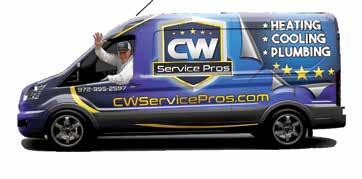 FREE ESTIMATES for Heating and A/C replacement Over 15,000 Online 5 Star Reviews We Are Sure To Make You Smile! CWServicePros.com 469-294-3222 Locally Owned & Operated Serving Our Customers for Over 24 YEARS! H HEAT & AIR H PLUMBING REPAIR H DRAIN CLEANING H LEAK DETECTION H WATER HEATER REPLACEMENT License #TACLA26090E / License #M-21377 Can’t combine offers or discounts. Restrictions may apply 469-294-3222 Can’t combine offers or discounts. Restrictions may apply Regular hours only. Not valid for after hours Emergencies. PLUMBING CONSULTATION $49 Can’t combine offers or discounts. Restrictions may apply 469-294-3222 When It Just Can’t Wait! When It Just Can’t Wait! Can’t combine offers or discounts. Restrictions may apply A/C TUNE UP SPECIAL Limited Time Offer $69 Ask about the 31 | CITYLIFESTYLE.COM/CROSSTIMBERS MAY 2023