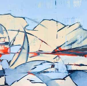 Capture the ethereal beauty of the Texas desert with this captivating abstract painting, inspired by the unique landscape surrounding Marfa. The artwork features a harmonious blend of soft blues, warm creams, and vibrant red accents, evoking the serene yet dramatic essence of the region.