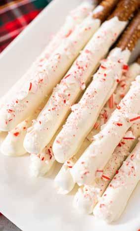 3. Dip each pretzel rod into the melted chocolate.