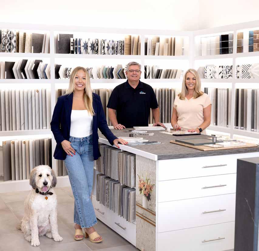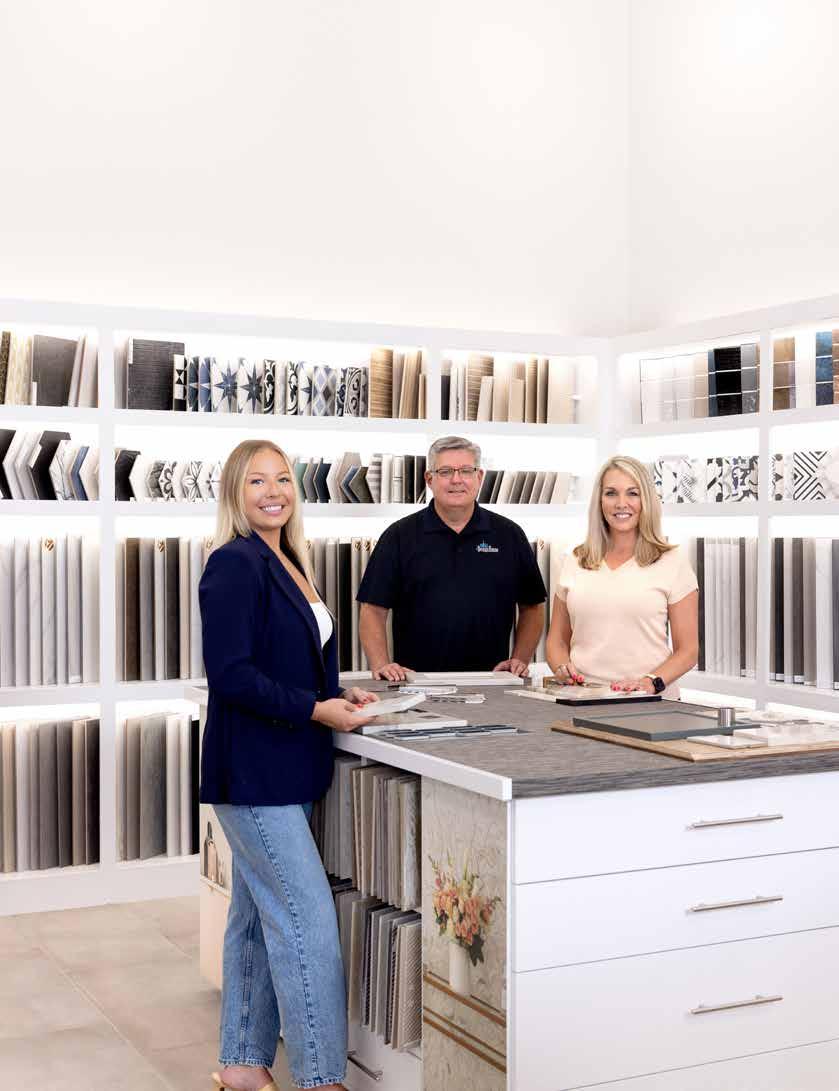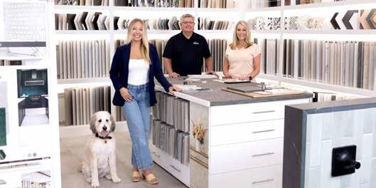 “Our industry is a functional industry, but it’s also very design-driven,” says Jennifer Homeyer, owner of The Design House, alongside her husband Ty. “Our customers like to dream, touch and feel things that are possible in their own home and we [want] to give them that experience.” The shelves of shining marble and richly colored granite samples against the wall are just a small part of their newly renovated 10,000 sq ft showroom designed to highlight the joy, beauty and ease that home design can be.