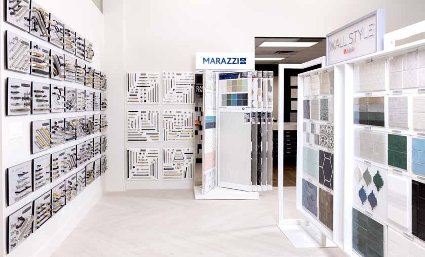 The organization of the showroom is optimal for a user-friendly and shoppable experience that doesn’t overwhelm the customer. Brands such as Shaw, Mohawk and Daltile are sectioned into areas for perusing specific elements such as countertops, engineered wood, luxury vinyl plank flooring, carpets, hardware, stunning mosaics and window treatments.