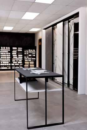 mosaics, and bathroom and kitchen solutions. A few years ago, Jennifer and part of her team received the opportunity to travel to Spain with Porcelanosa to see their showroom and source of inspiration. “We fell in love with the people, the culture and the products,” Jennifer says. The fact that Porcelanosa offers everything from tile to plumbing fixtures “fell in line beautifully with what we do and what we want to offer here.” The beauty of Porcelanosa shines in the timeless look of their color-neutral and texture-oriented designs.
