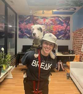 One day, 2 years ago, The Break Teen Center’s building and member-engagement manager brought Grimlen in for a visit. He has been a staple since. Grim, a bundle of joy and a lover of humans and animals, can be high energy, but he can also read the room and find his restraint so others are comfortable. He loves to be outdoors hiking, meeting friends, or at the beach. Hot dogs and Frosty Paws are his (not so) guilty pleasures, but his practical side refuses to eat his kibbles without a healthy dose of salmon oil on top. Grim knows what he likes!