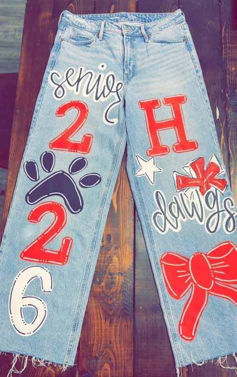 It’s the new thing now for senior girls to wear painted jeans on Fridays, so I’ve done a lot of senior jeans recently. I have also painted jeans for moms of cheerleaders to