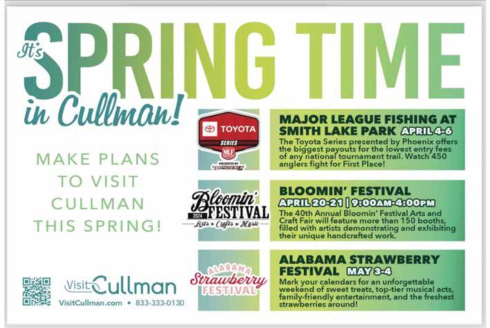 Investing in our community is a pledge to its growth and prosperity. This month, explore local initiatives, support hometown businesses and engage in community events that foster connection. Attend local markets, art exhibitions and cultural events that not only enrich your life, but also contribute to the fun vibe of Cullman.