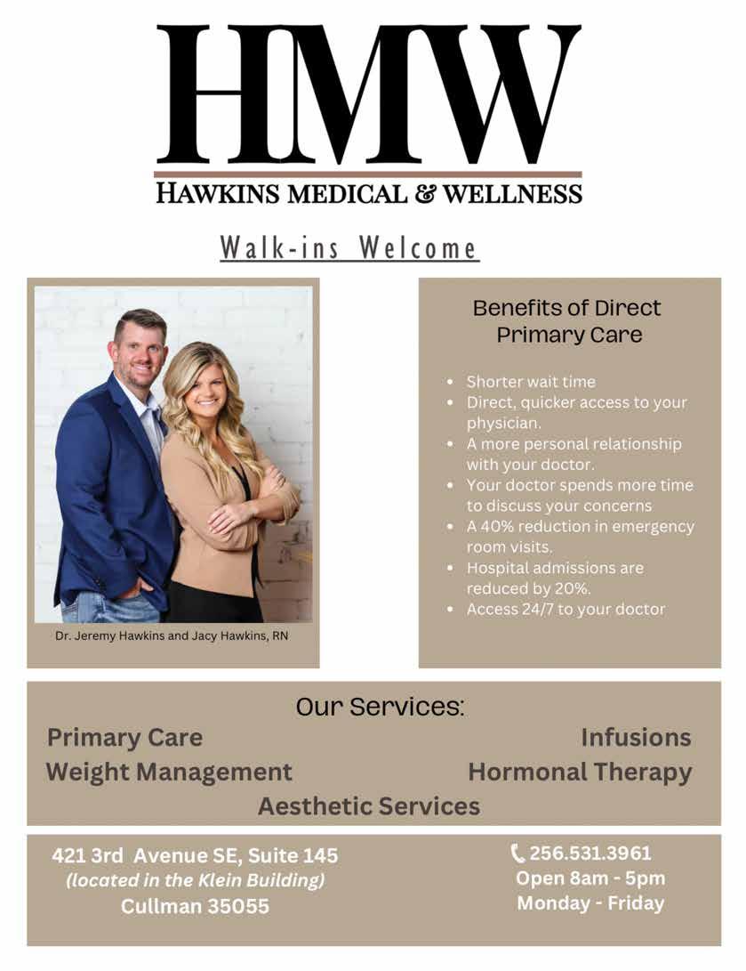 Jacy Hawkins is a registered nurse and with her husband, Dr. Jeremy Hawkins, owns Hawkins Medical & Wellness in Cullman.