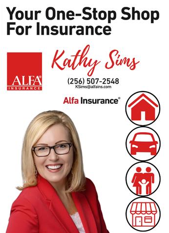 Find Kathy Sims Alfa Insurance Agent on Facebook at www.facebook.com/ kathysimsalfa or follow her on Instagram at www.instagram. com/kathy.sims.