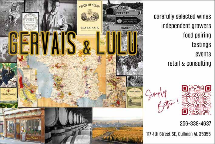 Gervais & Lulu has the best wines and champagnes in-store! Located across from Mary Carter, it also offers wine classes with your friends in the comfort of your home. The goal is to demystify the world of wine and pass on to you the knowledge acquired over a lifetime from the French vignerons themselves. Send a text with your selected theme and date or call 256-338-4637.