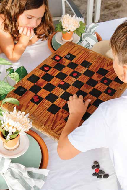 2. Game Board: For raw wood (such as our TicTac-Toe board), use a ruler and black paint marker to create board lines. For reclaimed or treated wood, use paint. Let game pieces and game boards fully dry. Seal with a polycrylic spray for protection from heat and moisture.