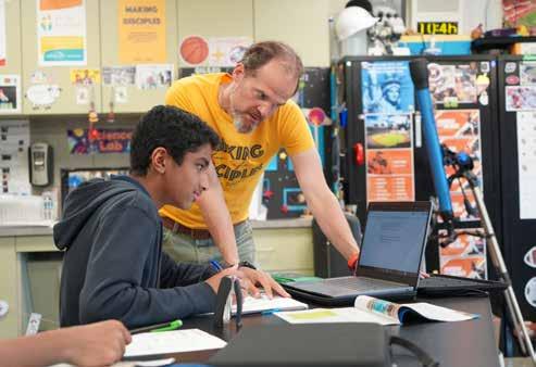 Middle School. Sixth through eighth graders tackle a high-school preparatory course sequence that culminates in Algebra I credit, lab science, and research writing. A one-to-one device program and project-based learning elevates collaboration, critical thinking, and public speaking. Electives range from advanced band and choir to e-sports, worship team, yearbook, and student leadership council. Signature experiences include a three-day outdoor-education camp and an eighth-grade civics trip to Washington DC.