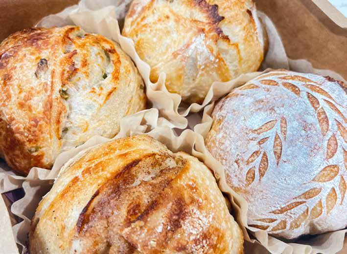 combinations like Black Truffle Cheddar Gruyère and Jalapeño, every loaf is naturally leavened, hand-shaped, and baked fresh in her home cottage kitchen. Beyond bread, Hazel & Crumb offers seasonal menus, mini loaf flight boxes, sourdough cookies, and rotating specialty bakes that invite the community to taste something new each month.
