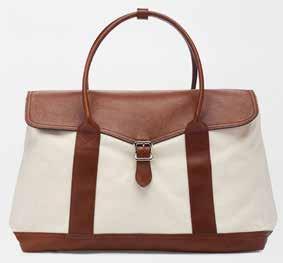 Featuring the Weekend Duffle in Ivory, $550. This duffle is the perfect go-to travel bag for the summer season. The 100% cotton ivory canvas with leather accents not only makes it lightweight and durable, but a neutral accent to any ensemble. The brass hardware adds a flare of sophistication, and the detachable shoulder strap lends to practicality and ease-of-use.