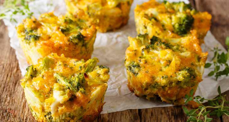 2. Place chopped seasonal vegetables in a large muffin pan . August vegetables: bell peppers, chopped broccoli, leeks, mushrooms, summer squash, and tomatoes