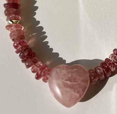 Featuring the Norah Necklace, $138. This gorgeously vibrant necklace features rose and strawberry quartz beads that radiate pure energy. 18K gold-filled brass clasp and extender. 14.5” with 3.5” extender. I love wearing this necklace solo or stacking it with daintier gold necklaces. Can be worn dressed up or down.