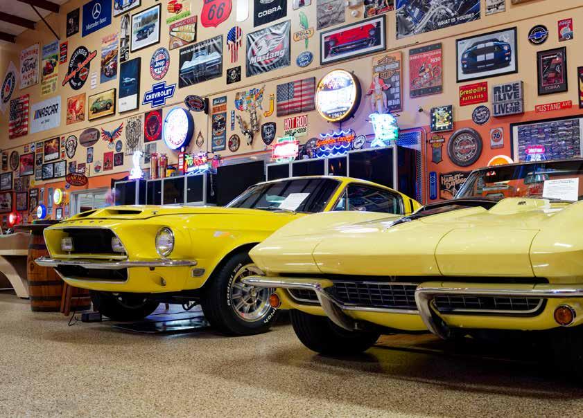 Among the standouts are a documented 1969 Indianapolis 500 Pace Car, an immaculate Porsche valued at over $600,000, and a series of perfectly restored Mustangs. The collection began modestly as one empty warehouse and evolved organically. “I bought the first warehouse and it was empty,” Lydecker recalls. It began with a gas pump from a friend and a suggestion from another to build a bourbon bar, resulting in the birth of this one-ofa-kind collection.