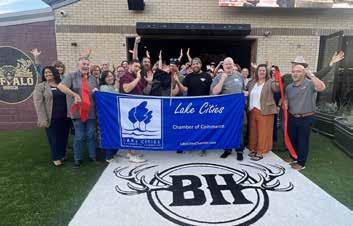 8: Group gathered at a pre-holiday networking mixer 9: Our publishers at a Lake Dallas City Council meeting 10: The swearing in of Daniel Robb as Chief of the Lake Dallas police department 11: Lake Cities’ Chamber friends at Buffalo Hirsch 12: Buffalo Hirsch owner John Williams with two business partners and Lake Cities chamber staff at their ribbon cutting 13: The Lake Cities’ Chamber celebrating a successful ribbon cutting for Buffalo Hirsch in Lewisville 14: Enjoying Chrissy’s Pink Party Club: Family Bingo Night
