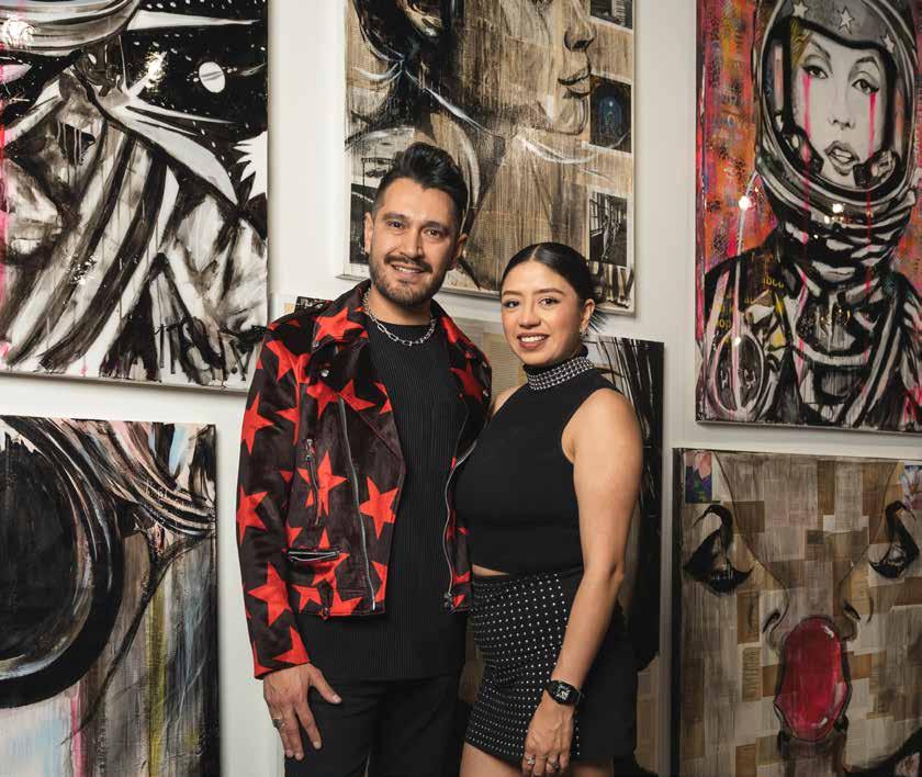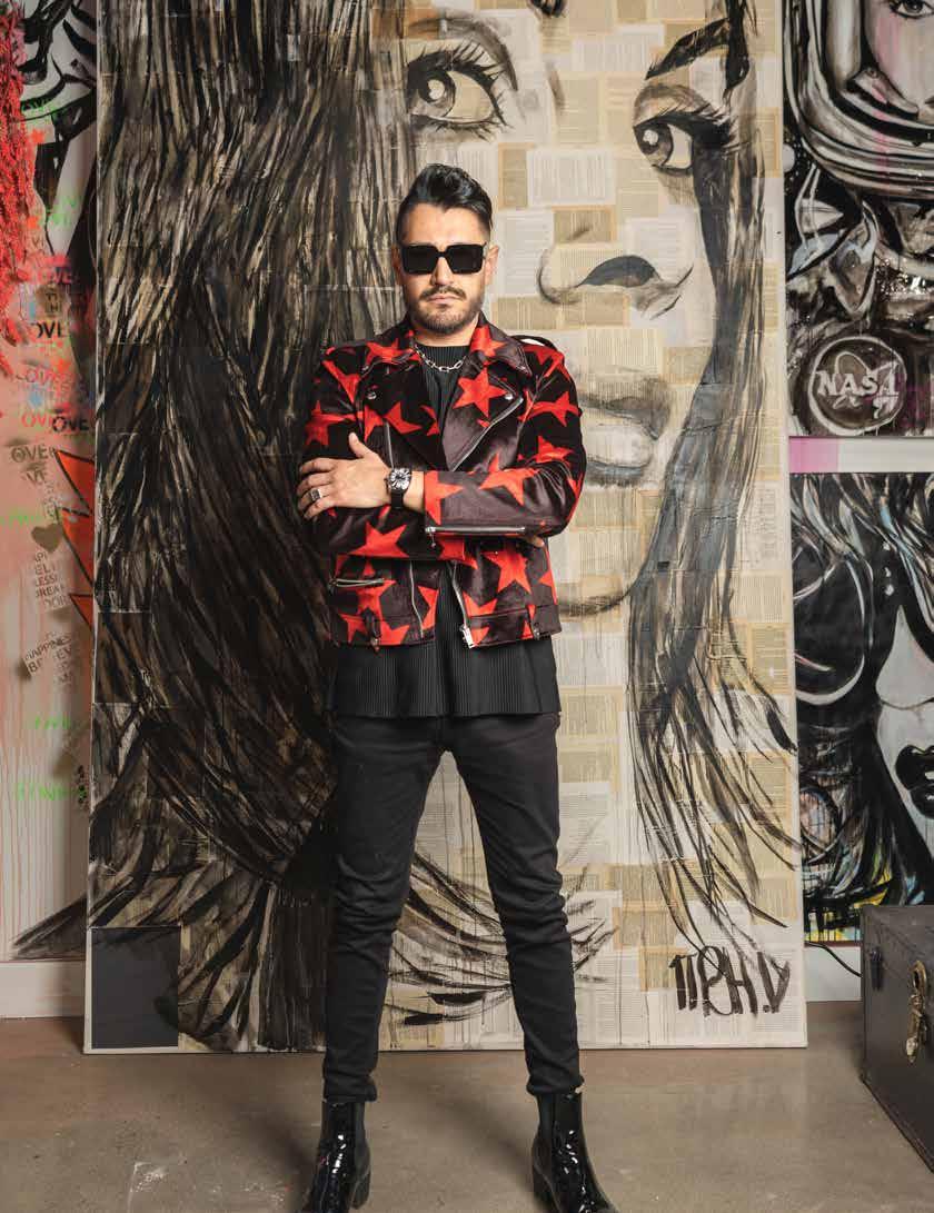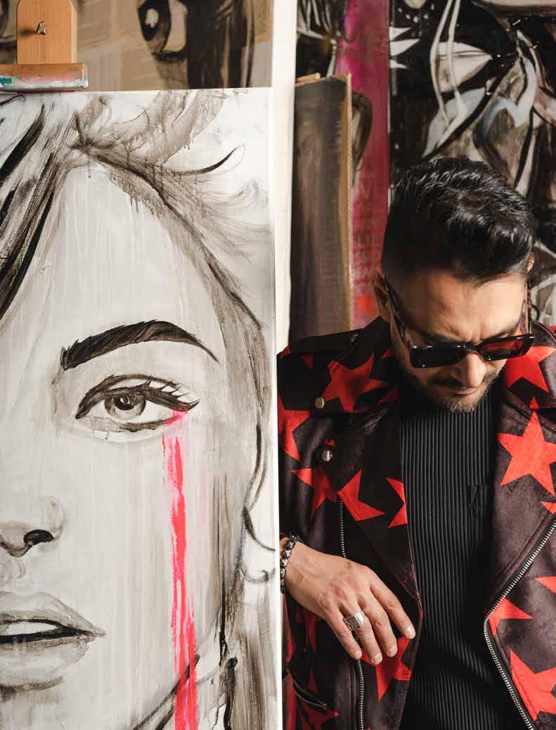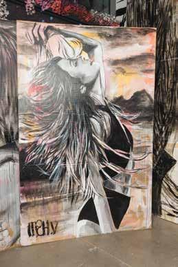 Michel specializes in portraits and mixed media, working across a variety of mediums including acrylics, water colors, charcoal, and his signature: neon colors. In most of his work, he uses a blacklight to create a two-inone painting that changes when exposed to it. When asked about his intention with this particular style, Mich said he aims to “express happiness through neon” and instill viewers with a sense of hope. One example is his other signature: a neon teardrop on the face of his subject, meant to represent “overcoming, success, relief - like a happy cry,” according to the rising artist.