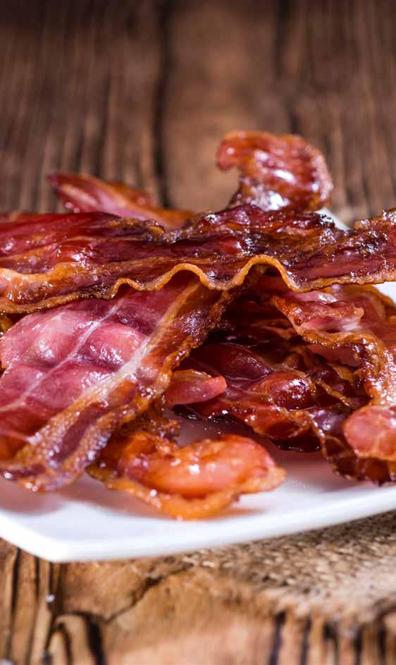 Step 4. Bake for 40 to 50 minutes until bacon is caramelized and beginning to crisp. (Bacon will firm up upon standing.) Let cool 5 to 10 minutes before serving.