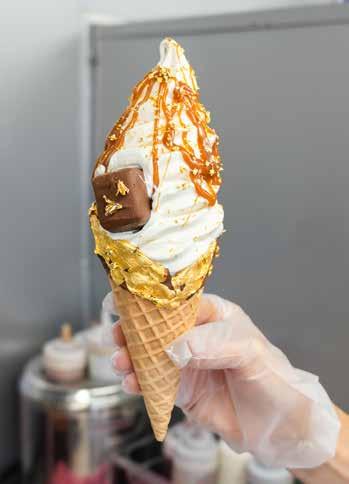 That same intentionality defines their product. GTG’s soft serve stands apart through quality and care. Made with 10% butterfat, their ice cream focuses on premium ingredients while minimizing preservatives, dyes, and artificial flavors. Classic treats are elevated with Europeanmade sauces, fine chocolates, and thoughtful details that transform a simple cone into an experience.