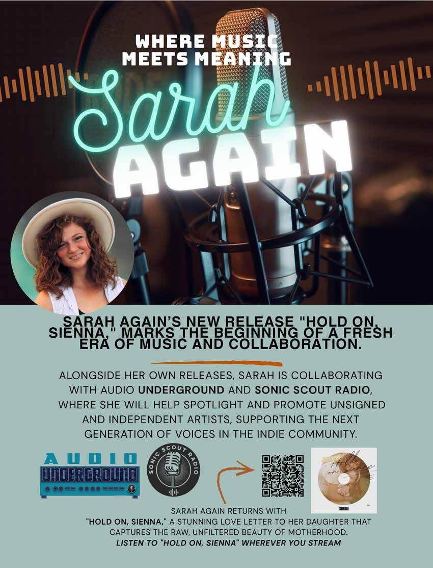 Meanwhile, Sarah Weinberg, aka Sarah Again, is carving out an inspiring creative legacy. Her new album blends raw emotion with radiant storytelling, highlighted by the personal single “Hold on Sienna,” an open letter to her eldest daughter. Beyond music, she amplifies rising talent through her partnership with Sonic Scout Radio and blckjcksn of Audio Underground, creating a platform for emerging artists to be discovered and celebrated.