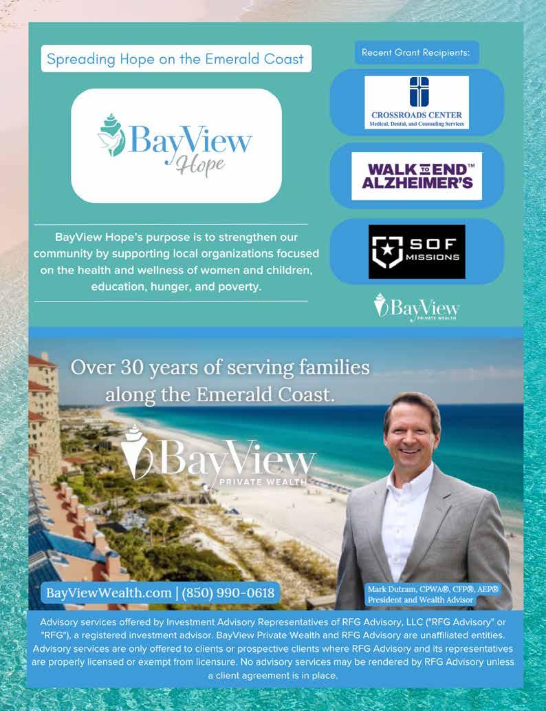 The Ground Up Project will host a Dinner of Design fundraiser on November 7th at 5 p.m. at Bitterroot in Destin. Enjoy a threecourse meal, paired with wine and cocktails and learn more about the impact this facility will have on the health and wellbeing of special needs adults in our area.