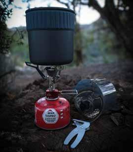 This is a very light, compact and self-contained backcountry cooking system offering everything you need to boil water quickly and efficiently. Paired with any IsoPro Fuel canister ( not included), it’s perfect for dehydrated, pouched camp meals or that must-have cup of coffee in the morning. The small kit comes in under 10 ounces and includes the renowned Pocket Rocket 2 Stove, a .75 liter aluminum pot, a handy polypropylene lid/strainer, and 16 16-volume-ounce ounce bowl, plus a pot lifter. We appreciate the pot’s insulated grip ring, making handling a breeze.
