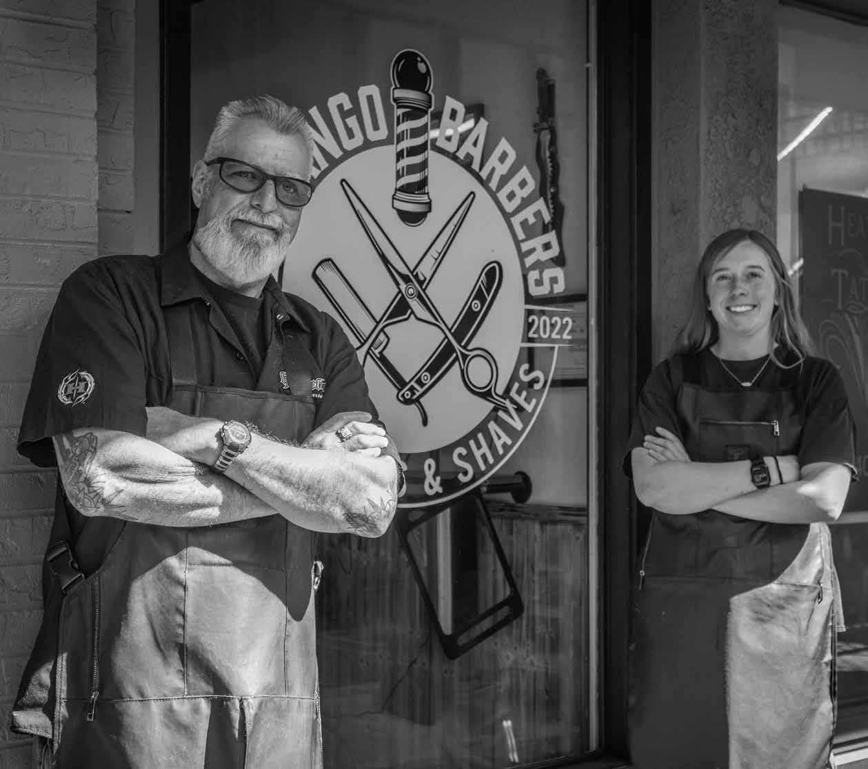 He first visited Durango for a motorcycle rally and grew to love the community. A year and a half later, he moved to Durango and opened his own shop in 2022. With services catering to old-fashioned barber experiences, he has built up a loyal client base—so much so that he was able to add another chair to his space and welcome Bianca Drebenstedt to the shop.