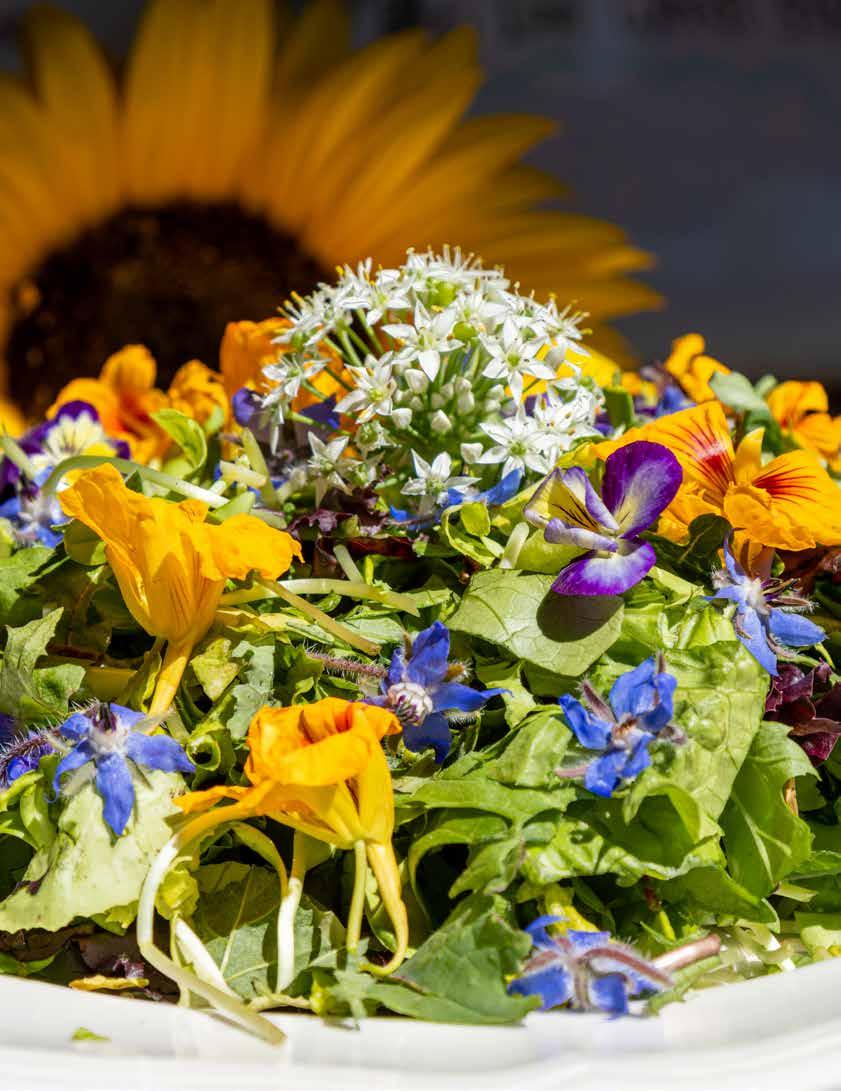 Dandelions are still abundant and, after recent rains, have gotten a second flush. Blair adds, “The dandelion is very versatile… [At the café], we make ice cream out of it. It’s a sorbet—just dandelion greens, avocado, honey, and lemon.” This combination makes for a super creamy and delightful frozen treat!