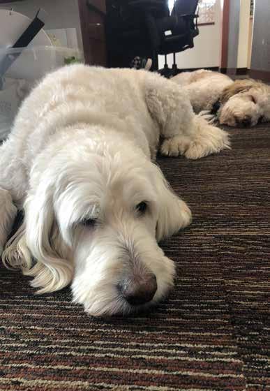 The story behind this unique addition to the office began when Dr. Jennifer Eisenhuth found herself in a predicament. Her husband and youngest child embarked on a spring break adventure without her, leaving her at a loss for what to do with Maslow, her now 10-yearold Goldendoodle. In a spur-of-the-moment decision, she decided to bring him to work. Initially planning to keep him confined to her office, fate had a different plan for them.