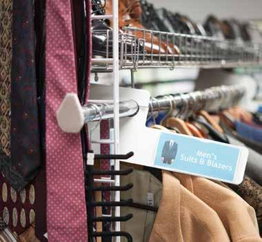 vegetables, shoppers selecting canned goods from a grocery-style layout, and visitors browsing clothing racks in the on-site thrift store. But what may surprise you is what’s upstairs: a career support center dedicated to workforce development and financial empowerment.