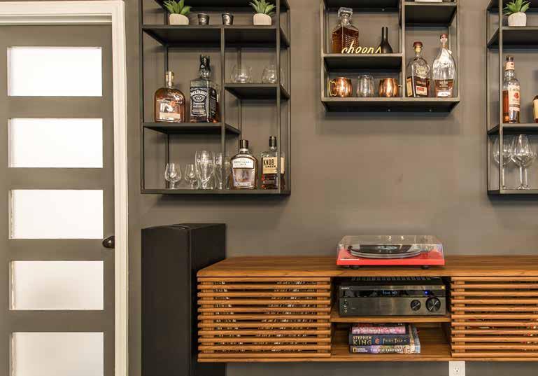 Music, lighting, surround-sound, and what’s on tap are all important. Setting up your man space with alcohol and servings is quite a key element in the masculine vibe of a space. You are creating a retreat at home. What do you stock and keep fresh in your man bar?