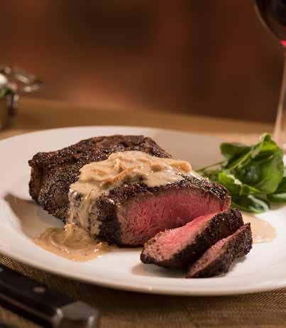 with what guests also love: the bone-in ribeye with 15-year aged balsamic. “I love it because of the perfect flavor profile combination from the marbling and the sweetness and spice from the balsamic, olive oil glaze and porcini mushroom crust,” Willis says.