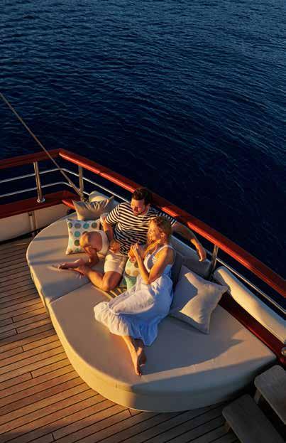 mainly due to our service,” Pave says. “Imagine a trip where the crew spontaneously takes you to catch octopus or fish for calamari, and the chef prepares it for you. There are not many places with that kind of experience, and our guests love it.”