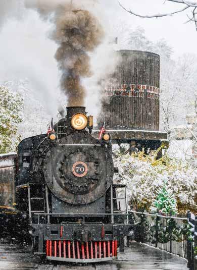 Smoky Mountain Christmas transforms the park into a glowing winter wonderland with more than six million lights, including eight new mega trees debuting this year. Honored with Amusement Today’s Golden Ticket Legend Award after winning “Best Christmas Event” a record 16 years in a row, the festival blends dazzling displays with world-class entertainment, from Broadway-style shows like Christmas in the Smokies to outdoor favorites including Appalachian Christmas and nightly fireworks in the Merry & Bright! Families can ride the Dollywood Express through illuminated color zones, meet whimsical holiday characters, or discover Santa’s “Naughty or Nice” list. www. dollywood.com/plan-your-visit/christmas/ CONTINUED >