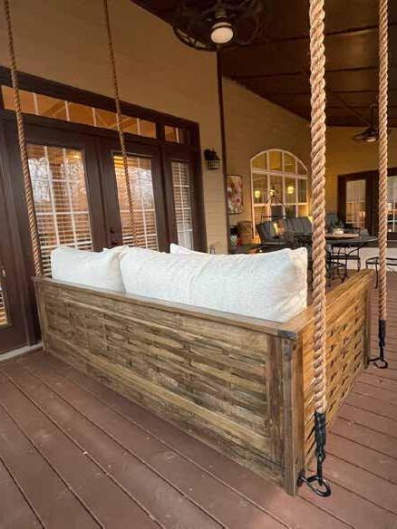A fully furnished riverfront retreat with 150 feet of Ellijay River frontage. Featuring an open main level with soaring wooden beams, a Texas Limestone fireplace, and a chef’s kitchen with Taj Mahal quartzite countertops, this home blends modern elegance with natural beauty. The main-level primary suite offers spa-like luxury, while the terrace level adds two guest rooms, two baths, and a spacious living area leading to a deck with direct river access.