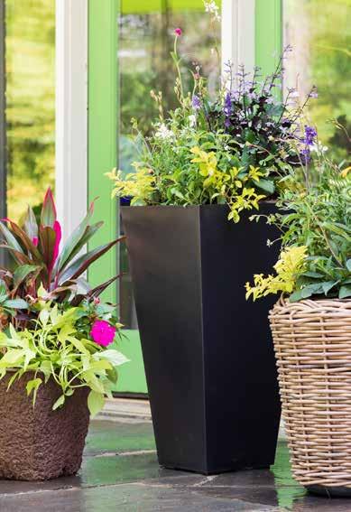 A perennial container favorite, boxwood provides year-round structure with only seasonal change-outs of smaller flowering plants. Whether shaped as a topiary (think a rounded ball perched atop a slender stem), a dramatic cone, or multiple shrubs in a long container, boxwood brings timeless elegance. While topiaries are an investment, they reward you with many seasons of beauty before eventually outgrowing their container.