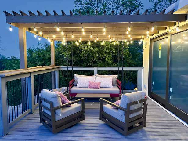 charm. Reframing the garage and harmonizing its aesthetic with the main structure created a cohesive exterior transformation. A sprawling multi-tier Trex deck, complete with an outdoor kitchen, beckons for alfresco gatherings, while strategically placed Pella windows flood the interiors with natural light, creating captivating sightlines throughout.