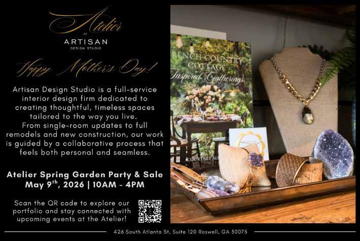 Today, Ryan owns Artisan Design Studio in Roswell, offering full-service interior design from new builds to final styling touches. “We guide every step of the design process,” she explained. “Our team is equipped to source, curate, and procure everything needed to bring a space to life, both inside and out.”