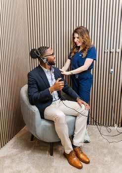 Peachtree Hearing has also made specialized services for musicians, athletes, and audiophiles a key focus. Musicians can protect their hearing with custom noise plugs or optimize their sound with stateof-the-art in-ear monitors, fine-tuned in the practice’s soundproof musician’s room. Athletes can have personalized earplugs designed for their specific sport, while audiophiles enjoy custom-made earphones and earbuds without discomfort. You might spot in-ear monitors customized by Peachtree Hearing on stage at the Super Bowl Halftime Show or at a concert by your favorite musical artist. Dr. Wikoff is frequently sought after by touring musicians who request Peachtree Hearing to visit backstage at venues like State Farm Arena or Ameris Bank Amphitheatre.
