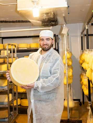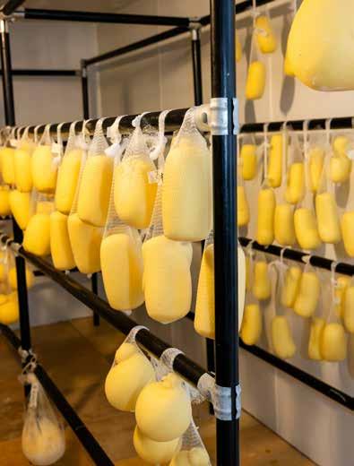 In a separate area of his cheese facility, there’s “the cave” where all the aging magic happens. It’s filled with hanging shapes of scamorza and caciocavallo. Shelves are stacked with wheels of primo sale, asiago, and toma. All his varieties are used in dishes served at his café, and “there are a few top restaurants we’re really proud to be in. The Summit House, Chef AJ, has been at many top restaurants in New Jersey. I met him when I first started. Wherever he’s moved, he’s taken our cheese.”