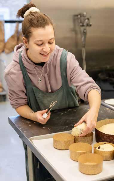 One type of bread that speaks to Sal’s Calabrian roots is their whole wheat loaf. It’s a hearty bread typically served in that region. “It’s special because we put whey in it from our cheese making instead of water. So, it’s not dairy-free, but it gets a little bit of fermentation from the cheese.”